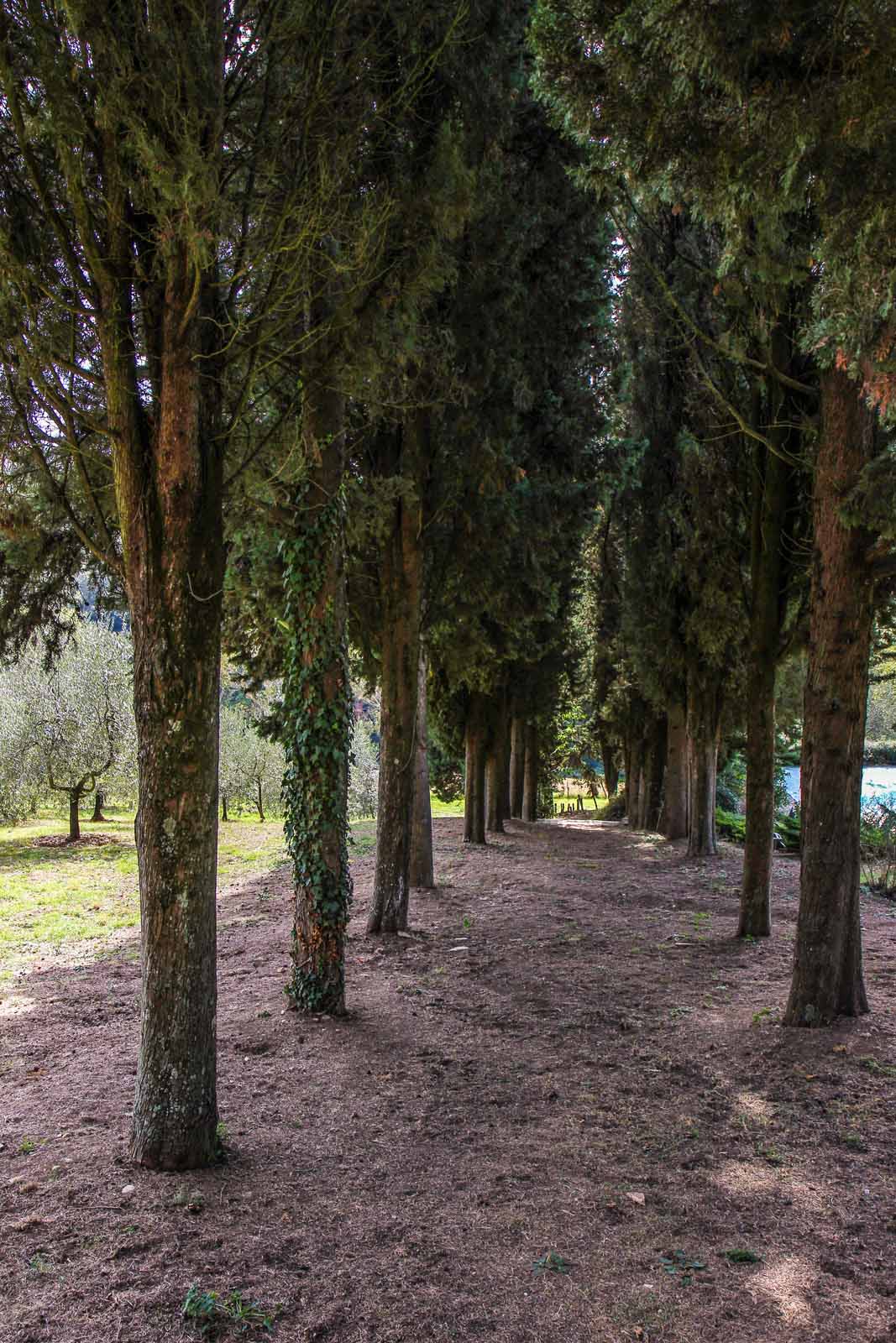 And the grounds? The pictures below were all taken on the grounds of the Muricce. A mowed lawn slopes down from the converted barn to the large swimming pool, and along the way are cypress trees, an olive grove, and benches for sitting and reading or enjoying the scenery. The courtyards and patios are planted with flowers and vines that invited us to sit outside and enjoy the Tuscan air. Our table inside was situated beside windows that looked out on one of the courtyards, so we could enjoy it even in the morning with our coffee and biscotti.