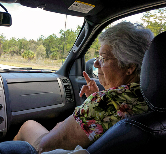 We really didn’t know where we were going. We just knew we had to be at the Tampa airport at 5 am on Thursday, May 7, at 5 am for a flight somewhere, and we needed our passports. So we drove up Wednesday afternoon in Jim James’ red truck, with Margaret navigating (see Margaret below with her navigation finger at the ready).