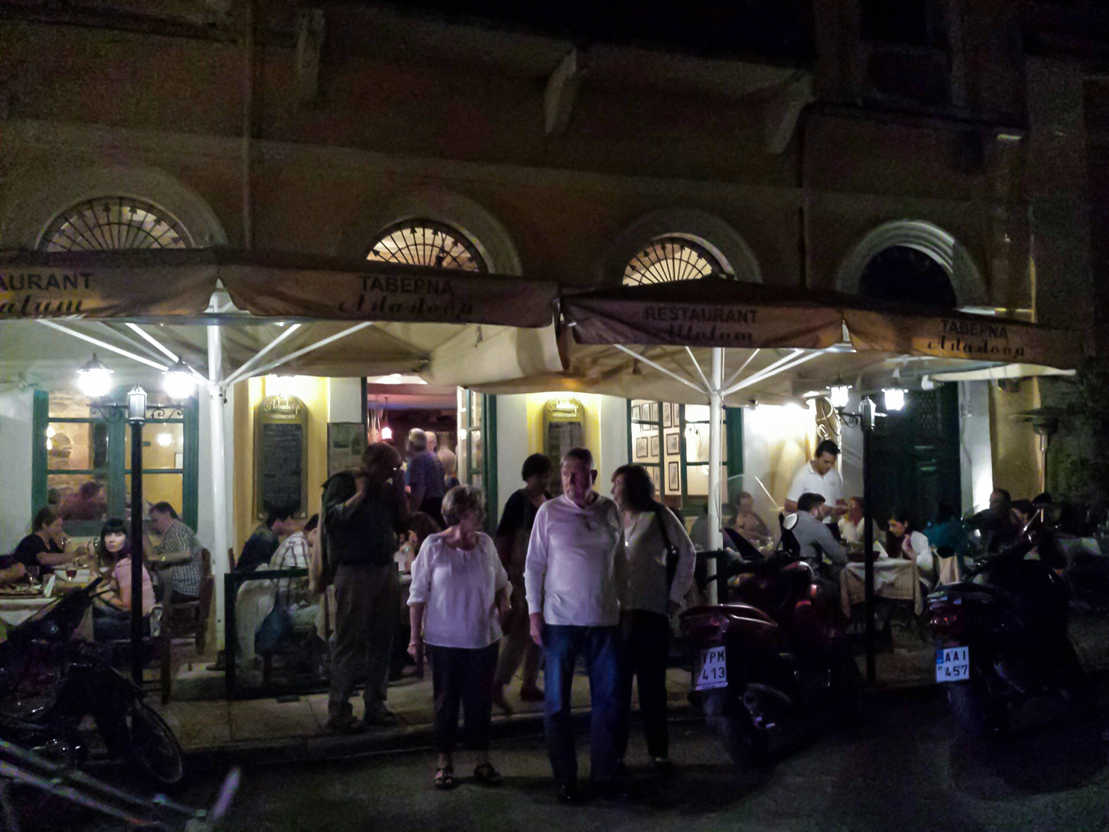 When we were satiated, we got back on the bus for the long trek back to Athens. We stayed at the same hotel we had booked on the first night – but dinner was at a restaurant that still has a license to break plates. It was a fun show.
