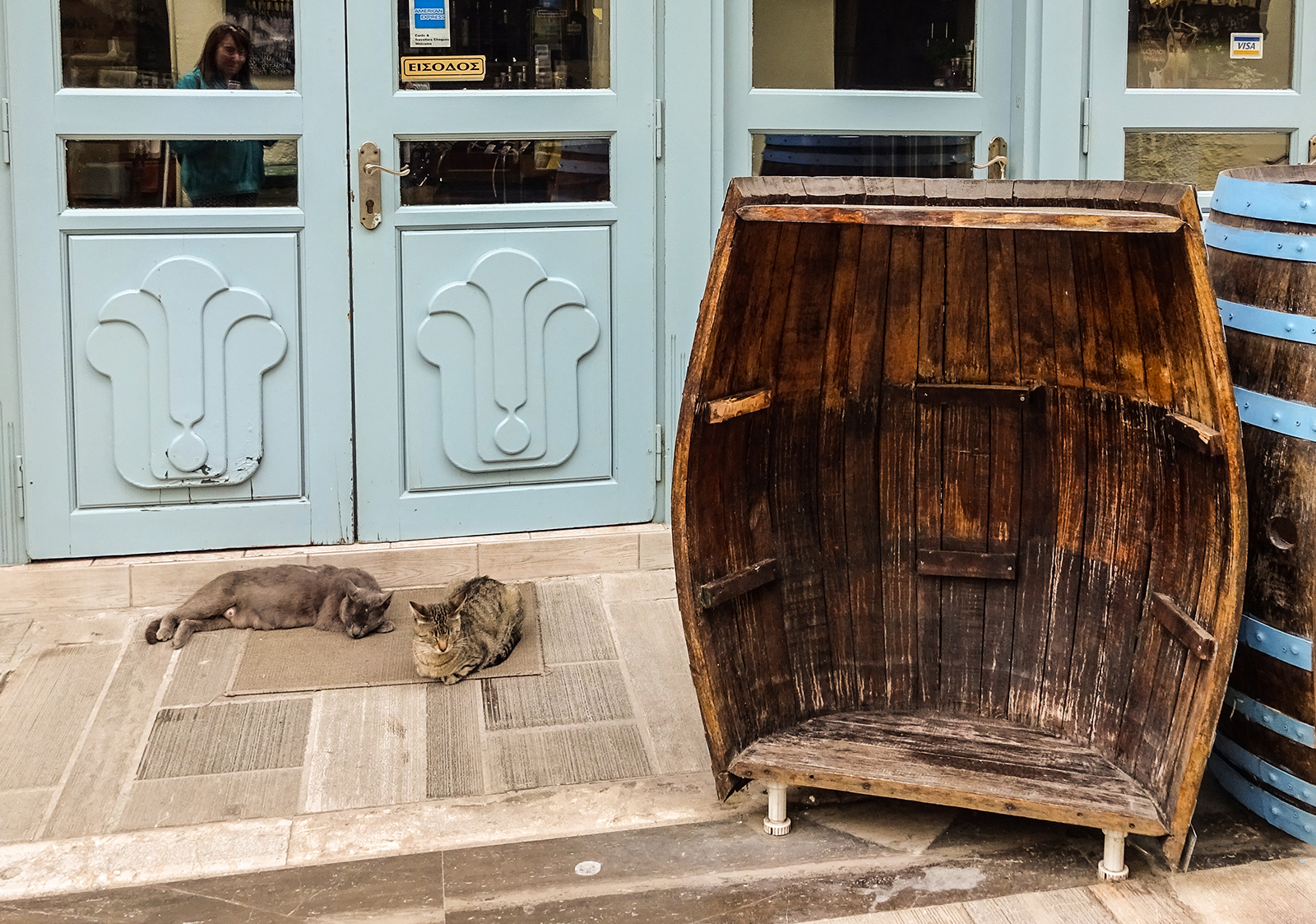 Tuesday we woke to bright sun in Monemvasia and a strong wind – so strong it blew the breakfast off of some of our plates (those that were seated outside). The shops were open, and we shopped! We took pictures! We stood against the wind, as did the cats, the mules, and the other people.